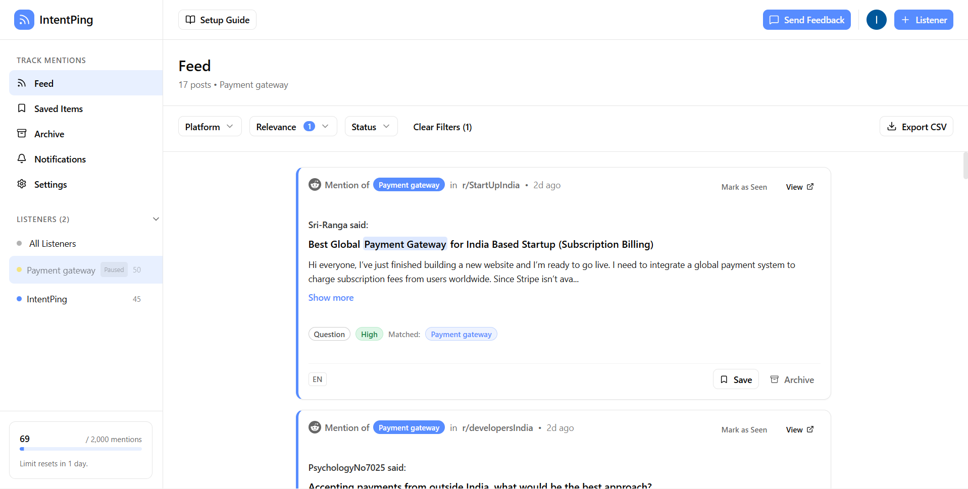 IntentPing says: "Here are the conversations that actually matter. Ignore the rest."